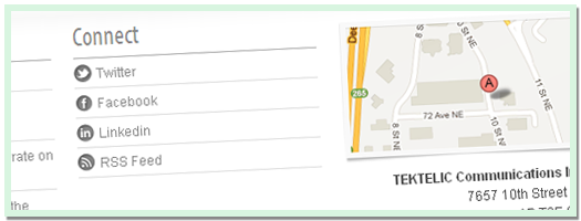 In addition to the general design elements, we also levered many of the companies lush 3D product renderings to better highlight the skills and attributes of this unique company. We also incorporated a simplistic iconography to the overall site, which in turn will better help visitors understand the different elements of the site. We also integrated the company’s Social Media accounts into the site, by creating visible links to all accounts in the header and footer, while also featuring the companies latest “tweets”:https://twitter.com/#!/tektelic in the sidebar of the news section. We also leveraged some basic social sharing aspects, which allow every press release, news article or career posting to be shared on Facebook, Twitter and Linkedin.